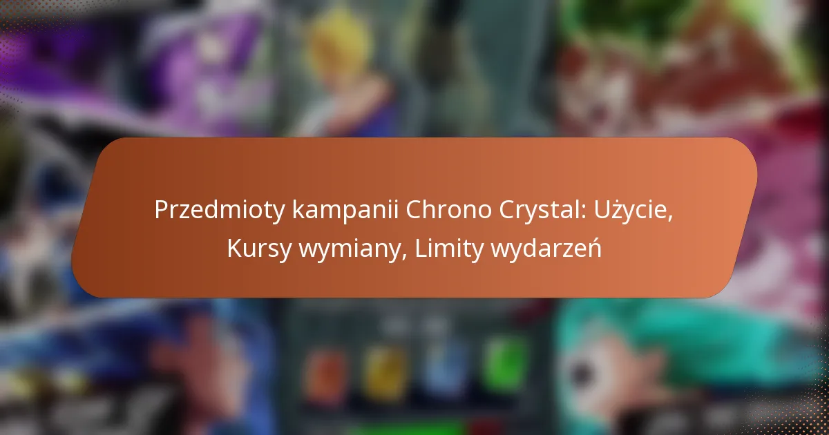 Kampanie Kryształów Chrono to zorganizowane wydarzenia w Dragon Ball Legends, które mają na celu zapewnienie graczom możliwości zdobycia Kryształów Chrono poprzez rozgrywkę. Głównym celem jest zachęcenie do uczestnictwa i utrzymanie aktywności społeczności poprzez oferowanie nagród, które można wykorzystać do przywoływania postaci lub zakupu przedmiotów.